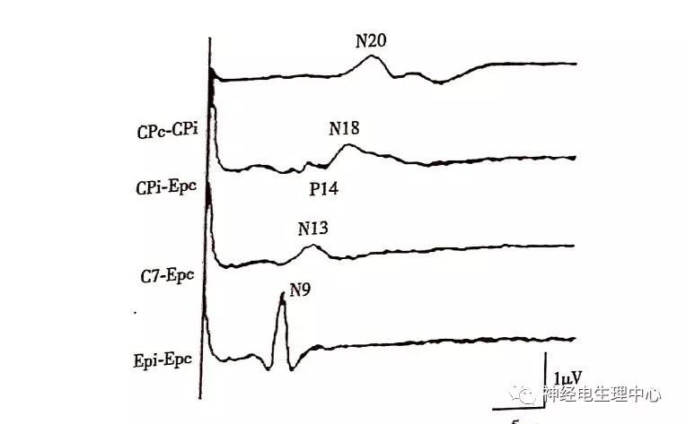 c.Somatosensory evoked potential: the most commonly used is short latency somatosensory evoked potential(short latency somatosensory evoked potential , SSEP)